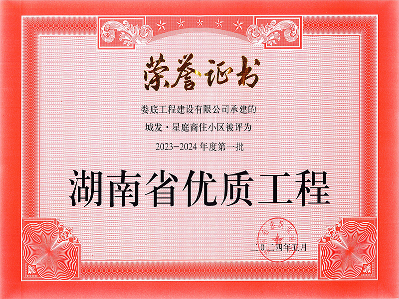 2023年-2024年度城發星庭商住小區項目第一批湖南省優質工程榮譽證書