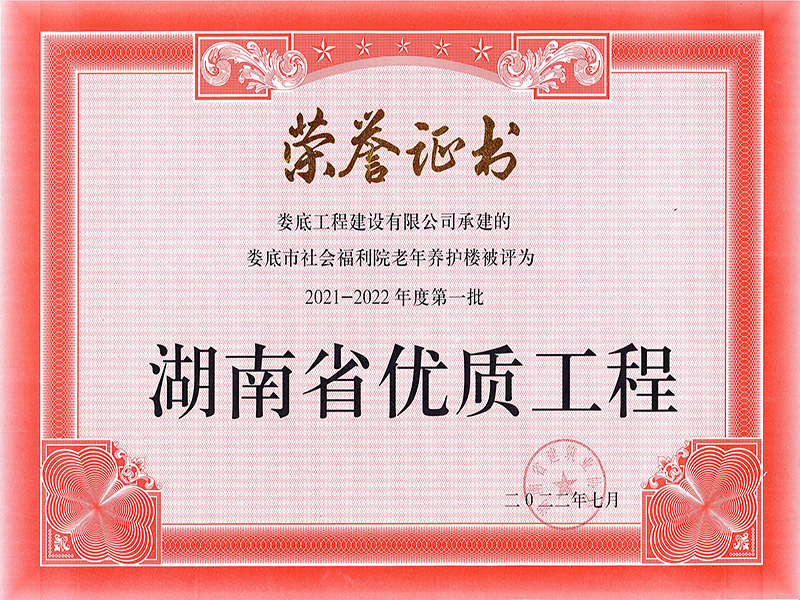 2021-2022年度第一批湖南省優質工程榮譽證書(婁底市社會福利院老年養護樓)