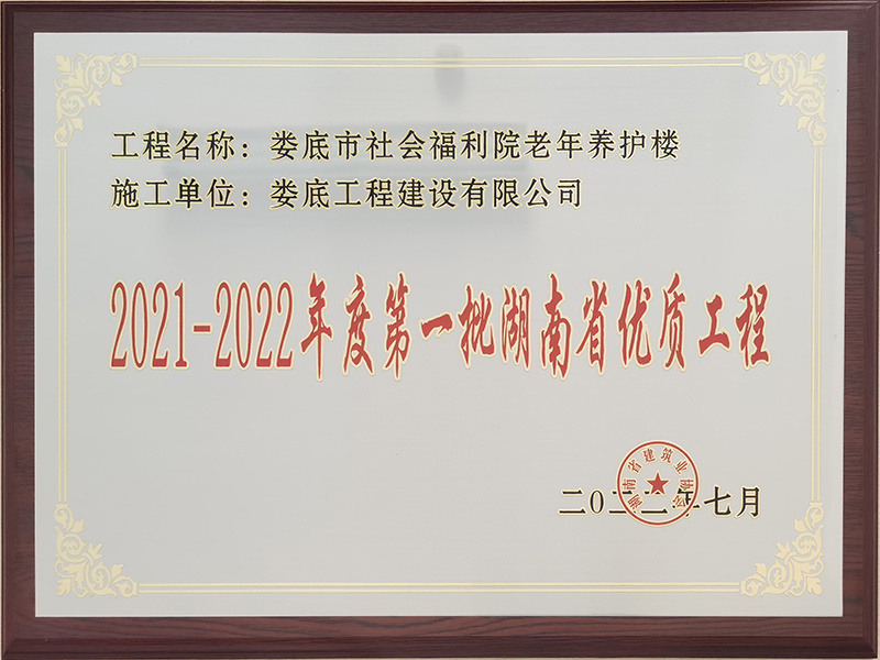 2021-2022年度第一批湖南省優質工程獎牌(婁底市社會福利院老年養護樓)