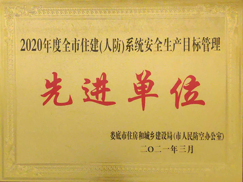 2020年度全市住建系統(tǒng)安全生產(chǎn)目標(biāo)管理先進(jìn)單位獎(jiǎng)牌