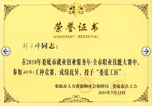 2018年7月13日,由婁底市人力資源和社會保障局、婁底市總工會、婁底市住房和城鄉建設局主辦的“2018年婁底市就業創業服務年.全市職業技能大賽”圓滿落幕。我公司選送的參賽選手劉小峰獲職工組砌筑工競賽二等獎,并被授予“婁底工匠”。