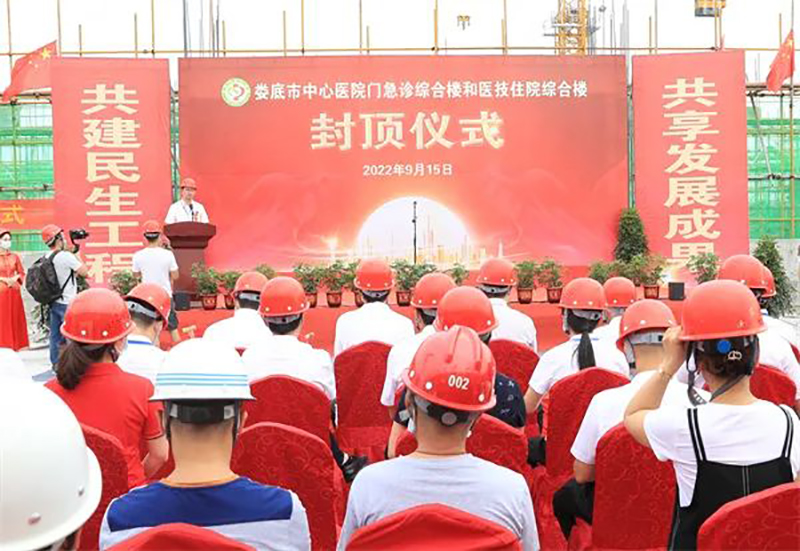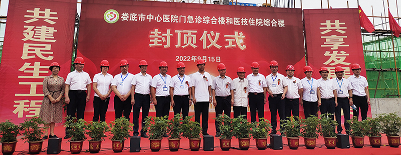9月15日上午,我司承建的市重點(diǎn)民生工程——婁底市中心醫(yī)院門急診綜合樓和醫(yī)技住院綜合樓順利封頂。市人大常委會(huì)副主任羅孝貴出席儀式并宣布封頂。