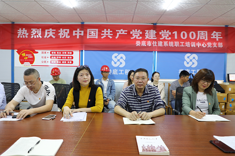 2021年5月25日下午,為慶祝中國共產(chǎn)黨成立100周年,婁底市住建系統(tǒng)培訓(xùn)中心黨支部來到婁底工程建設(shè)有限公司高溪社區(qū)城中村改造工程一期EPC總承包項目部,和項目部臨時黨支部聯(lián)合開展“憶崢嶸歲月,頌百年華誕”的主題黨日活動。2個支部共有18名黨員參加,其他項目部現(xiàn)場管理人員和工友代表共有30多人參加活動。